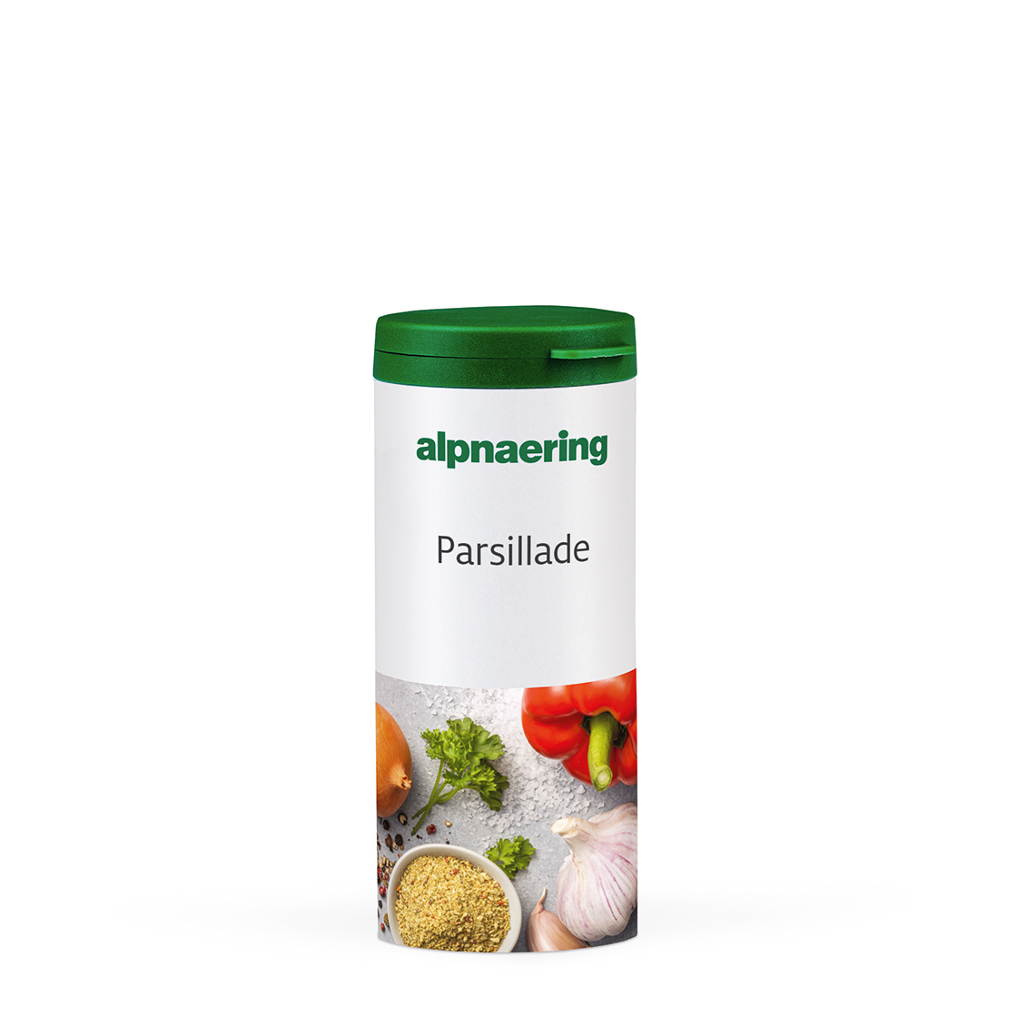 Tom krydderbøsse i aluminium med tettsittende lokk, bevarer aromaen og holder ute fukt.